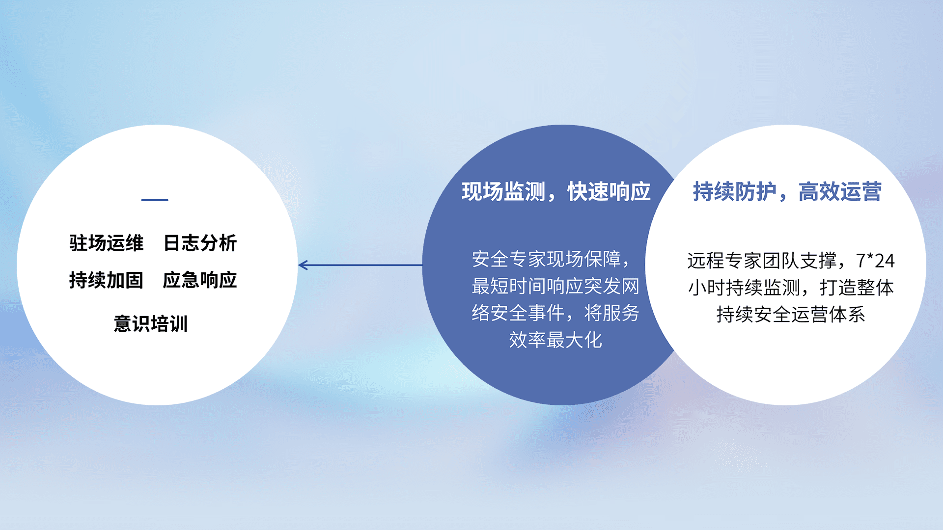 7X24小时持续监测安全事件,保持安全策略有效性,降低资产脆弱性风险,,精准拦截黑客攻击,,,,减少被黑客利用的机会,,,第一时间遏制,,,,降低损失。。。。